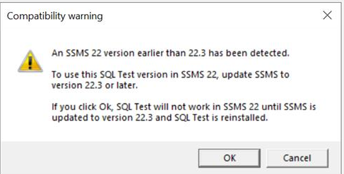 - It will not work in SSMS 22 until SSMS is updated to 22.3 and SQL Test is reinstalled
