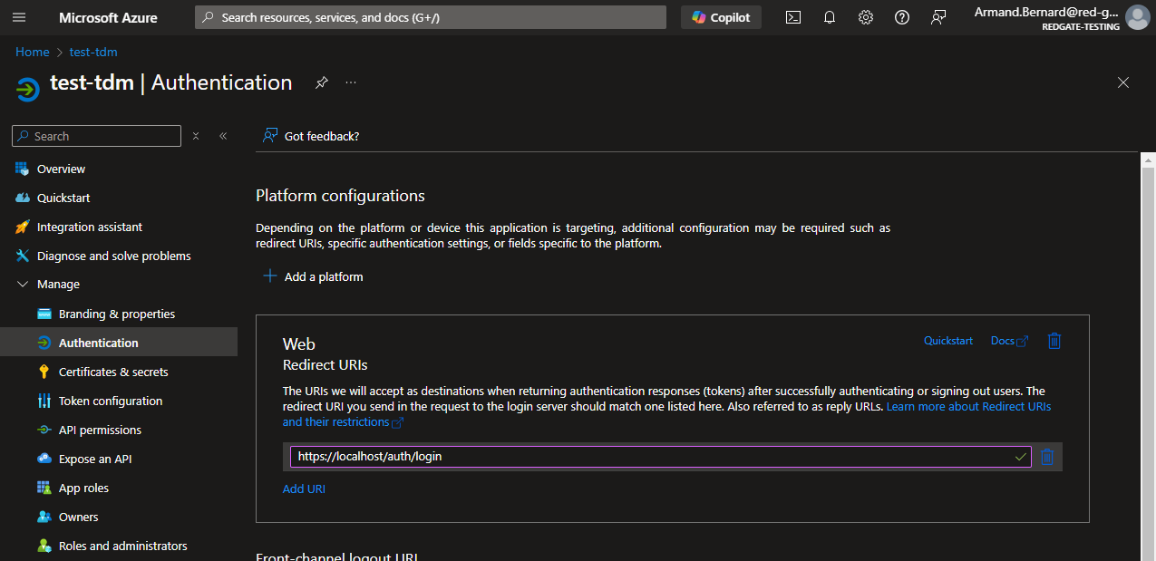Authentication with OIDC is strongly recommended to be setup right after the Proof of Concept phase to guarantee maximum security when using TDM for your actual use cases. Microsoft Azure is the OIDC auth provider of choice in this example, but similar approaches will apply for other auth providers as well.