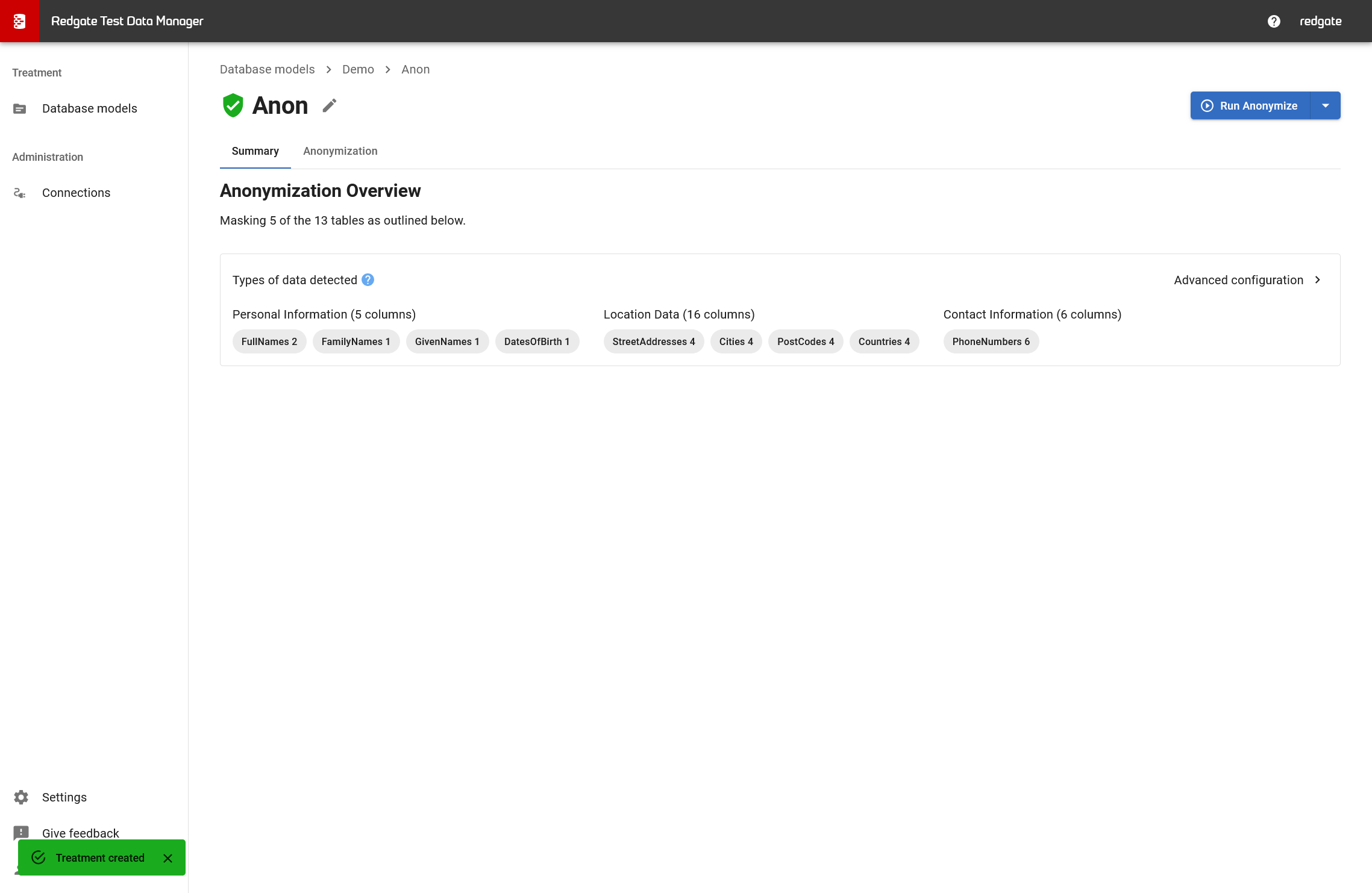 → Running an Anonymization Treatment